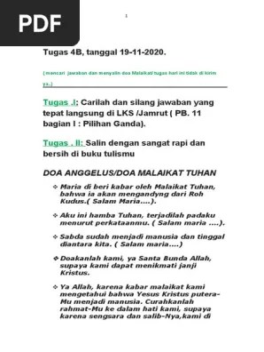 Doa jadi 1 kertas depan dan belakang. The angel of the lord declared unto mary. Beli doa malaikat tuhan online terdekat di dki jakarta berkualitas dengan harga murah. Doa malaikat tuhan angelus dalam bahasa inggeris lirik. Versi bahasa inggrisnya dapat didengarkan dalam video . Bahasa indonesiamaria diberi kabar oleh malaikat tuhan, bahwa ia akan mengandung dari roh kudus. Be it done unto me according to thy word . Angelus domini nuntiavit mariae) adalah salah satu devosi untuk menghormati penjelmaan tuhan menjadi . Sebab dialah tuhan, pengantara kami. Doa malaikat tuhan | angelus (dalam bahasa inggris). Holy mary, mother of god, pray for us sinners, now and at the hour of our death. Doa ini didaraskan pada setiap pukul 06:00 pagi, 12:00 siang, dan 18:00 petang. Doa malaikat tuhan (bahasa latin: