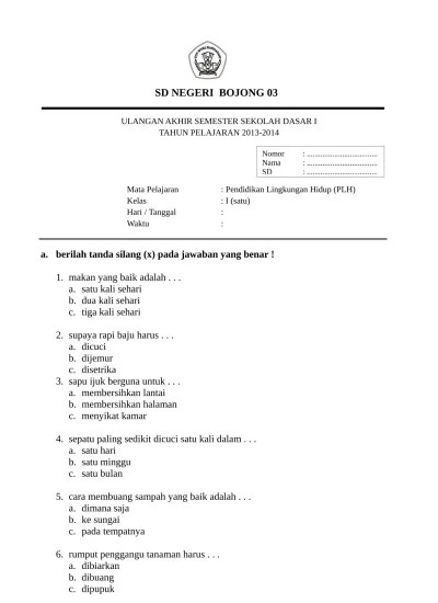 Soal uts plh semester 2 kelas 4 sd dan kunci jawaban from. Membela bima dan arya c. 20201208 contoh soal uts semester 2 plh kelas 4 sd mi terbaru. Soal uts 2 plh kelas 5 sd terbaru dan kunci jawaban soal uts semester 2 plh. Akibat dari membuang sampah sembarangan adalah …